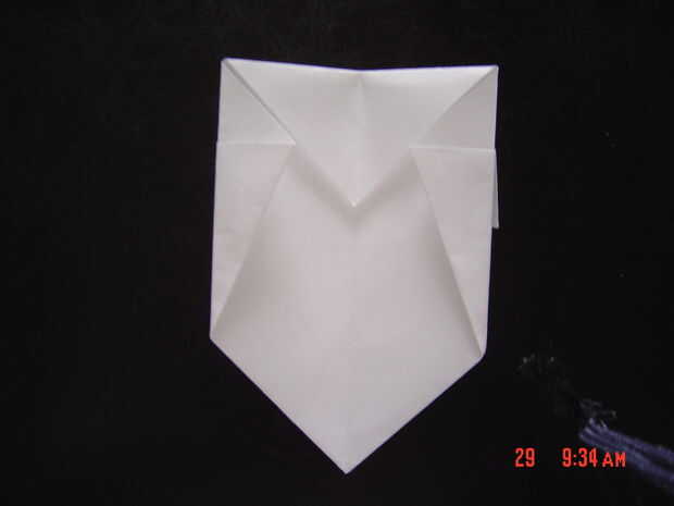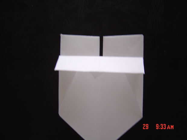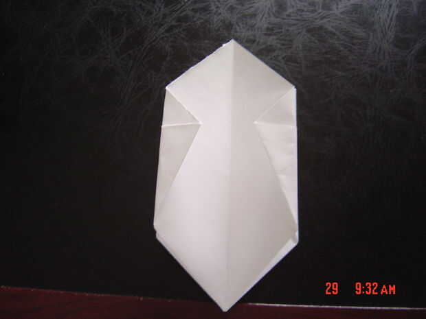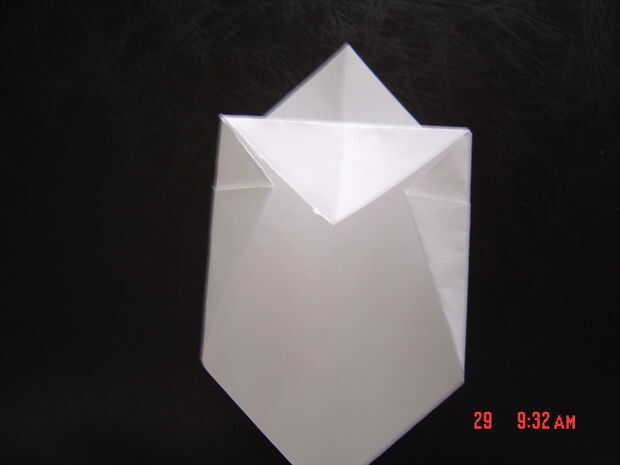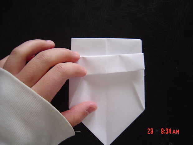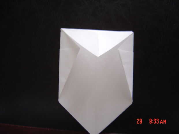 [Foto 4] ahora doble la parte superior hacia abajo como se muestra en un rectángulo. Si esto no tiene sentido simplemente haga clic en hacia adelante y hacia atrás del cuadro 3 cuadro 4.