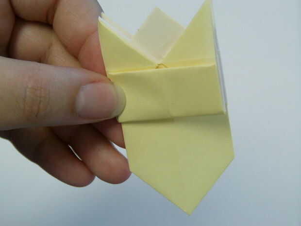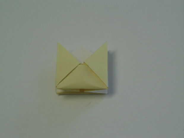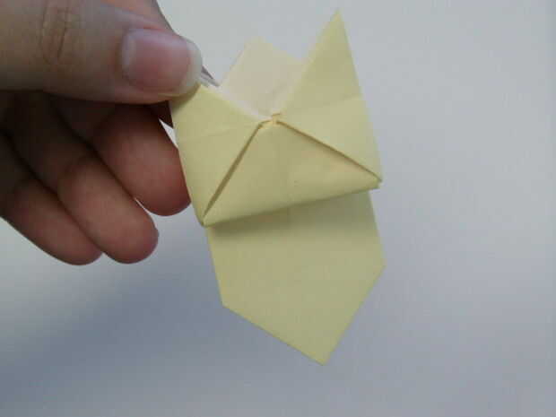 Coloque las esquinas de la última parte que dobla en los bolsillos de la izquierda y derecha.