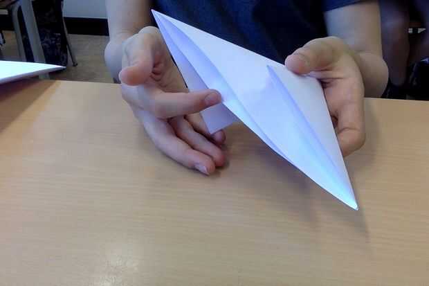 En el triángulo, hay un agujero (ver imagen) en la parte inferior. Abrir este agujero y presiona las dos esquinas del triángulo plano.