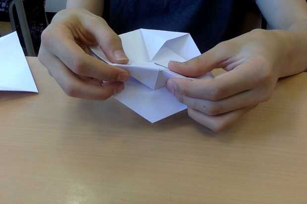 Tome el abierto las aletas y doblar sobre el borde por la mitad (ver foto) por todos lados.