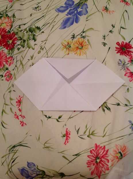 Ahora, toma el borde superior y doblar hacia el centro de la Plaza. Hacer lo mismo con el borde inferior. Hacia el corazón del procedimiento con la figura final.
