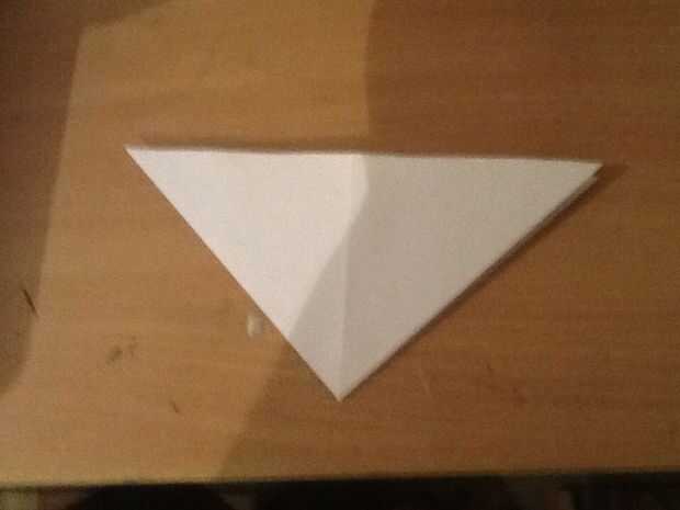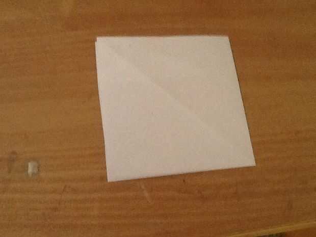 Primero dobla el papel por la mitad verticalmente abierto, luego doblar por la mitad horizontalmente. Doblar la mitad por la mitad. Abra la solapa superior y aplane, voltear y repetir la aplane para obtener un triángulo.
