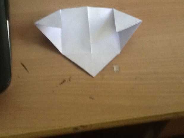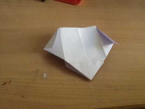 Dé vuelta el papel y doblar las aletas del segundo para hacer pliegues. Dobla la solapa en la mitad. Abra el documento y el borde inferior para hacer la caja PS. las aletas escondidas en ir en la caja (ver última imagen)