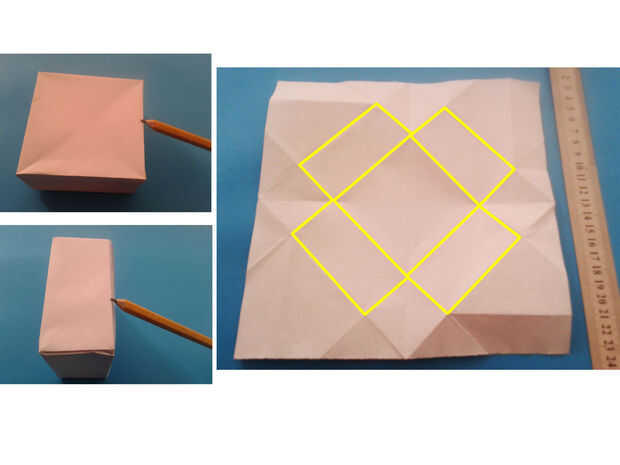 Para poder imprimir las fotografías en la ubicación exacta, es necesario doblar el cuadro primero, luego tomar el lápiz y marca las fronteras como en la imagen. Luego desplegarlo y medir la posición con la regla.