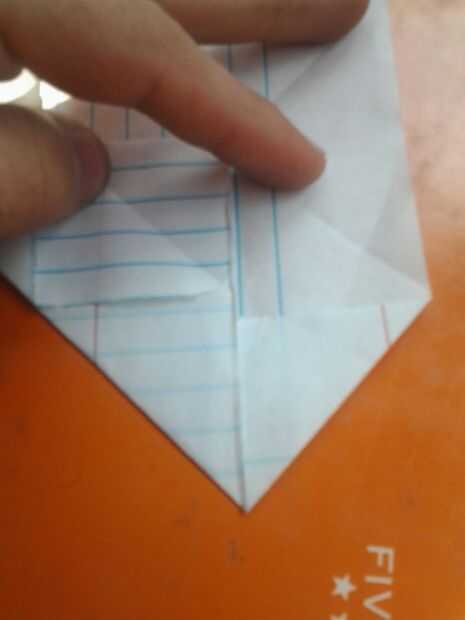 2-ahora doblar la parte inferior de la aleta en a donde hace un pequeño triángulo en el extremo (Foto 2)