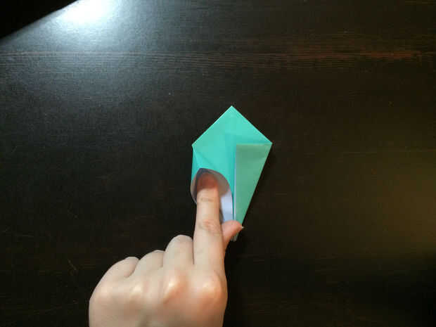 Similar a cómo lo hicimos tres veces, una de las solapas que acabamos doblado sobre y expandirlo para que pone plana como se puede ver en la imagen 4.