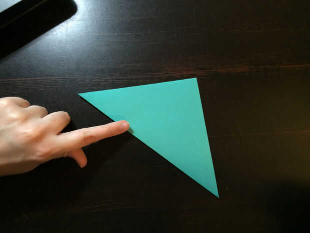 Para comenzar, tome uno de la esquina del papel y plegarlo a través uniformemente a la esquina opuesta para crear un triángulo.