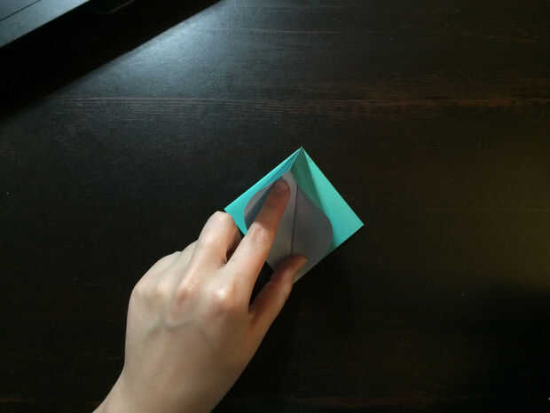 Para el siguiente pliegue, simplemente doblar la pieza para ver el triángulo en el otro lado y repita el paso anterior!