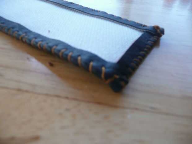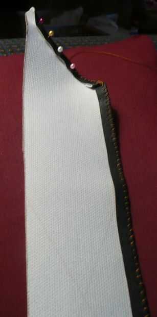Usted tendrá que doblar a la tela por debajo de sí mismo aproximadamente 1/4 de pulgada en cada lado. Encontré esto ayudó mucho, aquí la fijación. Esta había cosido de manera donde tire la aguja por un lado y luego bucle hacia atrás sobre el borde para el mismo lado otra vez, como un sacacorchos. Nudo en los extremos para mantenerlo en su lugar. Hacer esto para una de las piezas largas.