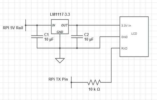 Este circuito utiliza tres pines en la placa de arranque T-Zapatero - 5V, GND y TX. Para obtener más información acerca de los pines GPIO, consulte: http://elinux.org/RPi_Low-level_peripherals