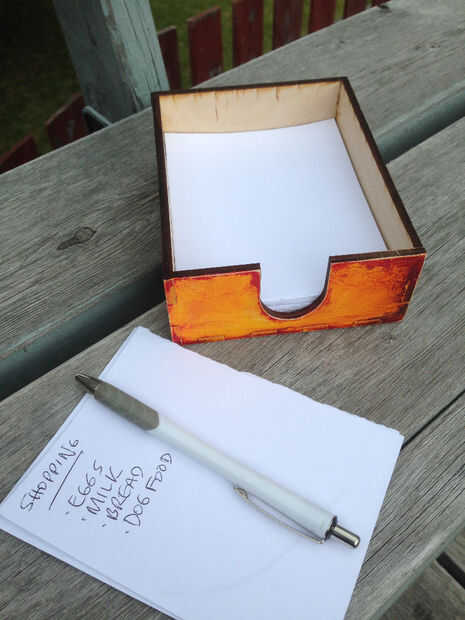Mi solución de papel Nota/lista durante muchos años, ha sido rasgar las hojas impresas de un lado en trozos de tamaño más manejables por cuartearles y luego mantener una pila muy útil en la esquina de un cajón de la cocina - funciona, pero no siempre es bonita y a veces que tienes que cavar alrededor de...