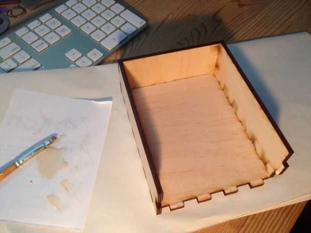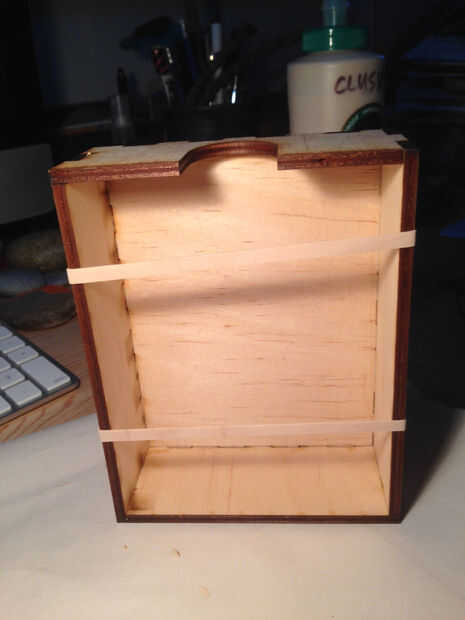 Montar la caja, pegar a un lado a la vez. Revise el interior de su caja para cualquier exceso de pegamento y limpiar con el cepillo de pintura, por limpiar en un trapo.