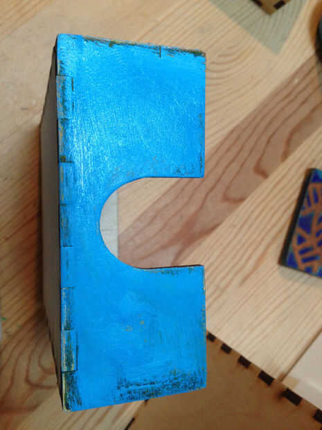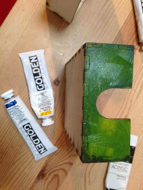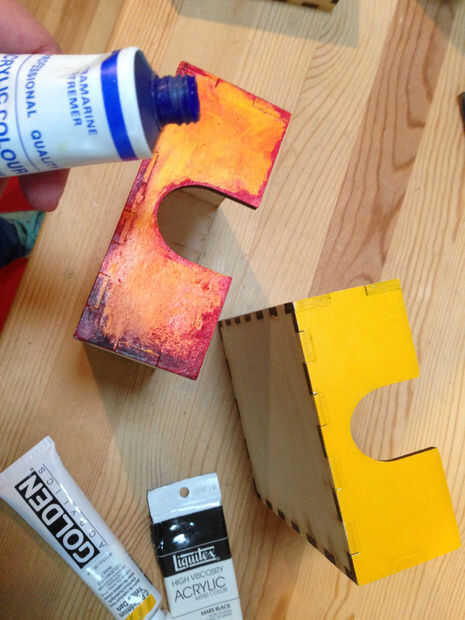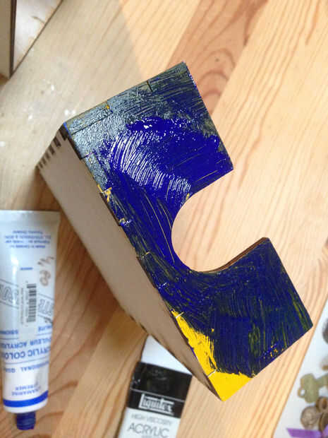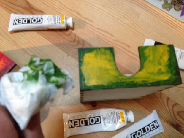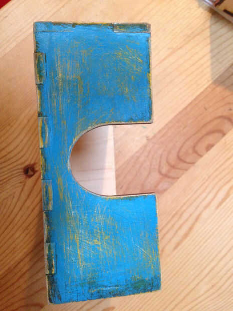Paso 6: Pintar el frente de la caja - afligidos amarillo/azul/verde
