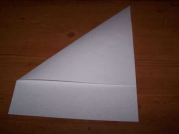 Tomar una de las esquinas y doblar diagonalmente. [Foto1] debe tener un pequeño rectángulo en la parte inferior, corte. [Foto2]