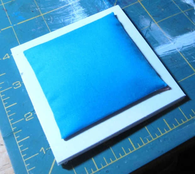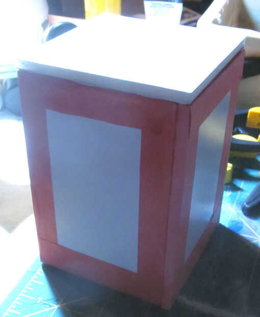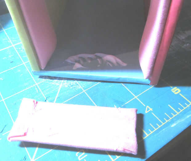 Cuando la caja externa se haya secado, pega los soportes del compartimiento secreto en el interior de la parte inferior de la caja.  Colóquelos hacia arriba un poco como se muestra, para acomodar del compartimiento acolchado inferior de cierre.  Las piezas se adapta perfectamente y pueden necesitar ser engatusado en su lugar.  Pegué y afianzado con abrazadera 3 apoya en y dejar secar.  A continuación, el último fue encajado en su lugar.   Medir la dimensión exterior de la caja y cortar un trozo de tablero de la espuma para adaptarse.  En este caso fue 3 1/2 ".  El acolchado inferior centrada en esta pieza del pegamento y luego el pegamento a los bordes del fondo de caja.