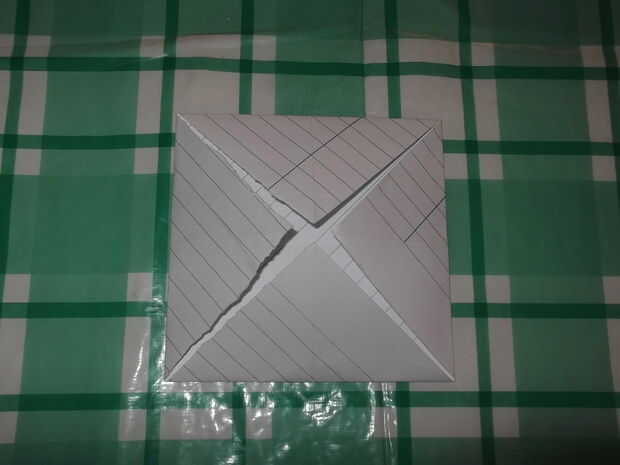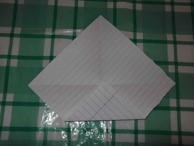 Doblar las cuatro esquinas hasta el punto de centro del papel como se muestra.