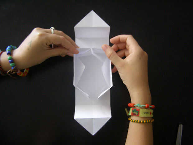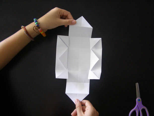 saque los dos tirones en la parte superior y la inferior (como en la primera foto) y el pliegue en los dos sitios que forma los sitios de la caja (Foto 2).
