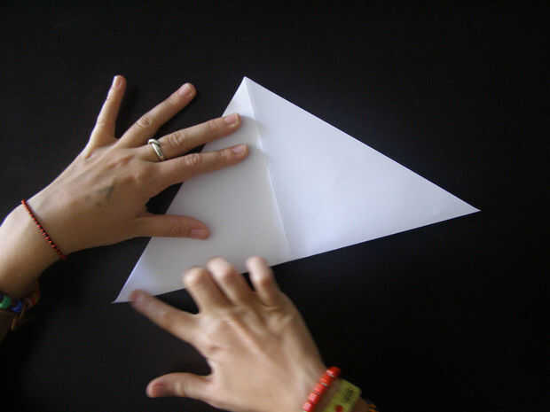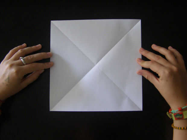Entonces doblar la plaza en diagonal y abrirlo de nuevo.