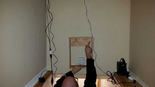 Marca con algo sostenido a través de los agujeros que previamente ha perforado en la placa de pared; el cuadro de abajo e instalar los dos escarpias.