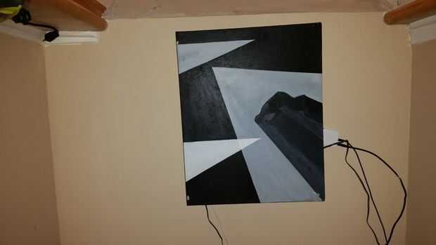 Retire el marco de la caja y levantar el cuadro en la pared donde se desea. Alguien que le ayude a ser posible, o puede utilizar un nivel (si no tienes uno, el teléfono debería hacer, pero viendo números tienden a hacer que la gente se obsesione por tener exactamente a 0 cuando el teléfono no es perfecto para comenzar con y ni es su pared!).