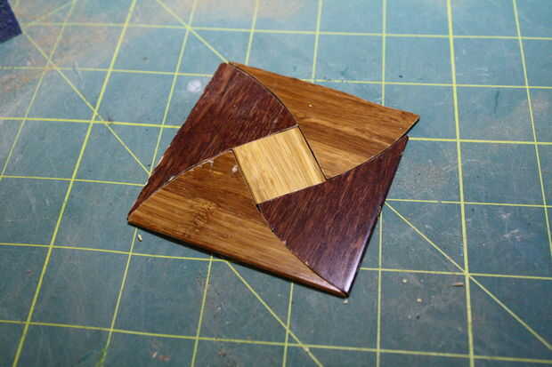 Medir el espacio que desea cubrir y encontrar o crear su propio diseño para ajustarla. Junté algunas opciones diferentes de Illustrator (al final utilicé una variación más simple de uno de ellos) e incluye seis de los patrones que en caso te hice como escalar y utilizarlos. Un método muy preciso para cortar los trozos de madera sería utilizar un cortador láser. Lo que hice fue imprimir el diseño sobre cartulina pesada, cortar cada pieza del patrón de papel, trace sobre la parte posterior de uno de los trozos de madera y cortar utilizando una herramienta giratoria. Una rueda de corte es buena para cortes rectos, y lijado bits puede trabajar bien para moler las piezas para caber exactamente. Resulta más eficaz cuando se utiliza este método para errar en el lado grande durante el corte, los ponen en el patrón y luego lijar cada pieza hacia abajo un poco hasta que coinciden perfectamente. Experimentar un poco con la dirección de la veta; una gran parte de este arte es utilizar la singularidad de la superficie de madera en el diseño.