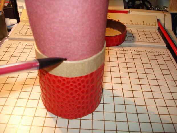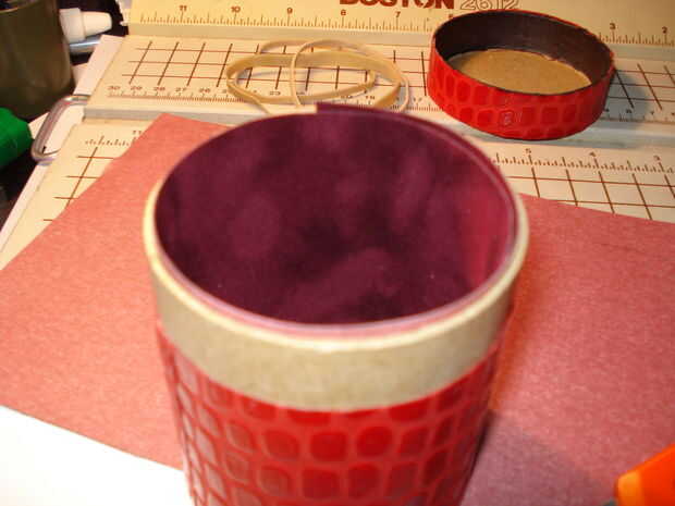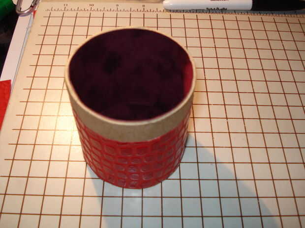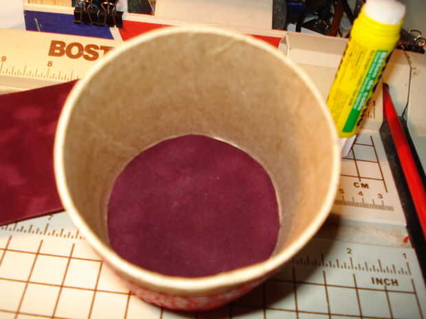 Mida y corte el interior lados. Cubre con pegamento, pero especialmente las fronteras. Colocar en la caja para pegar y usar un marcador o cualquier objeto cilíndrico para asegurarse de que el lado es pegamento uniformemente.