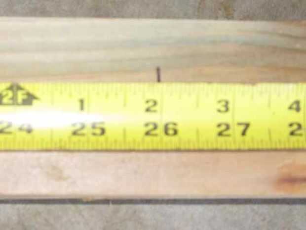 Tuve mucha suerte. Tenía dos largos de 4 pies y mis medidas eran 26 pulgadas y 20-1/2 pulgadas. Agregar 1-1/2 pulgadas y se igualó a 4 pies. Cuenta el área de residuos del corte de sierra.