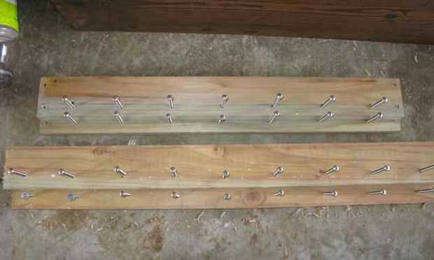 En el tablero se superponen, perfore dos agujeros en cada extremo de los tornillos de conexión.