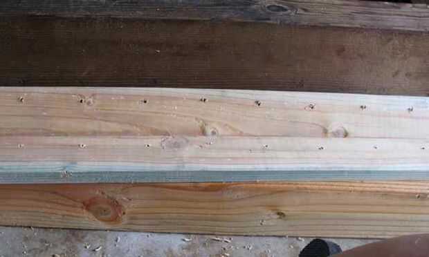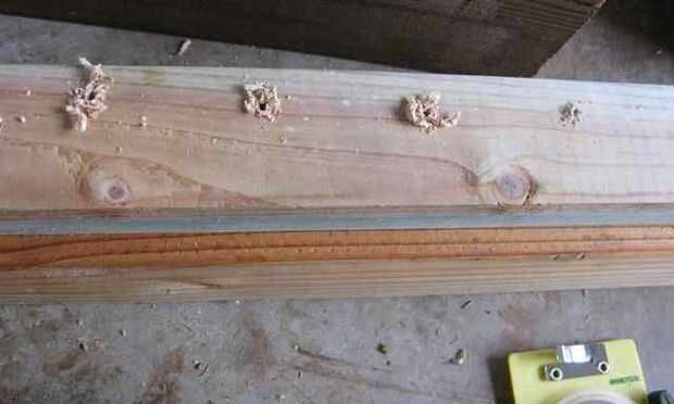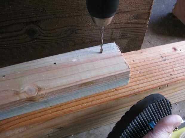 Taladre agujeros guía aproximadamente 1 de cada borde en todas las cuatro piezas de madera. Si quieres más estabilidad, perfore dos agujeros para cada marca. (usted necesitará tornillos adicionales)