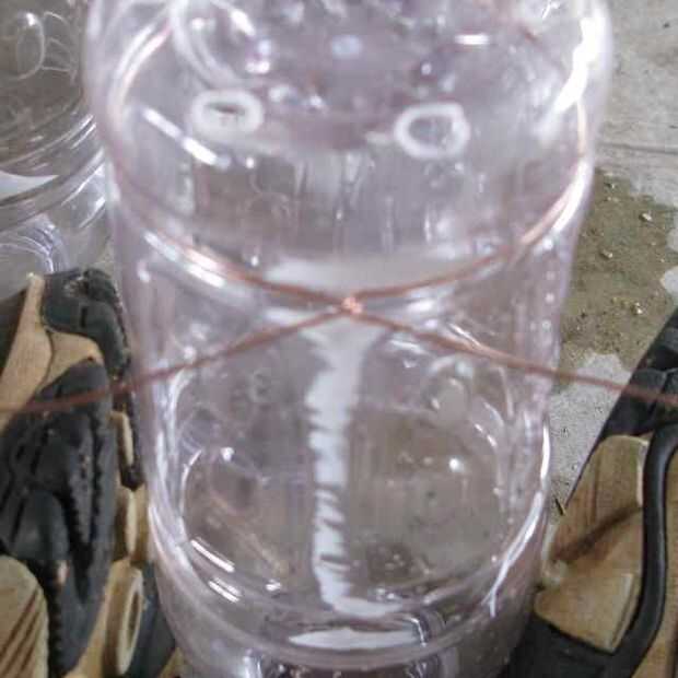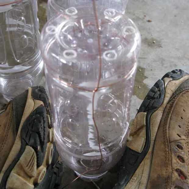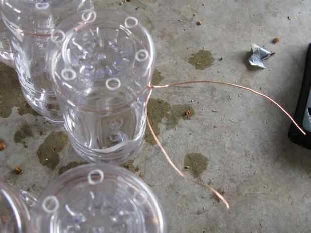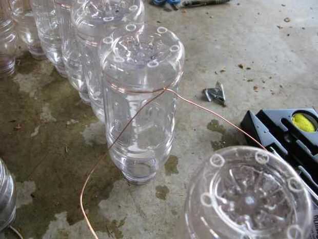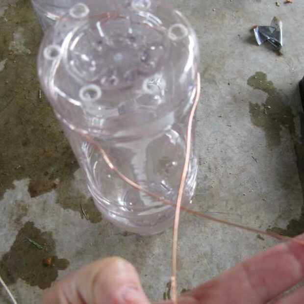 Lazo en la parte inferior de la primera botella, se en la ranura y tuerza el alambre firmemente alrededor y extender los cables separados.