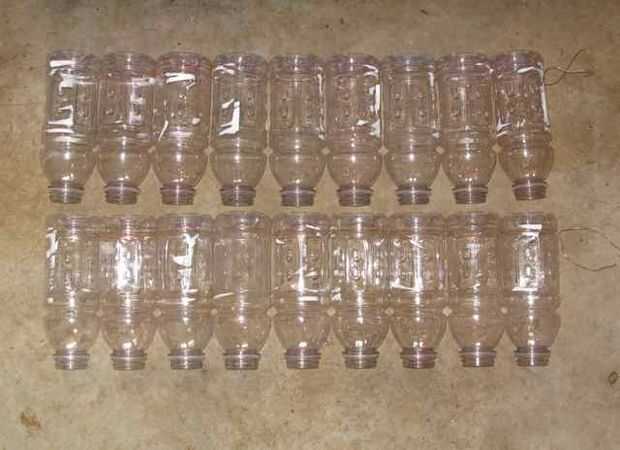 Poner la segunda botella junto a la primera y envolver los extremos de la segunda botella, terminando con un ajustado giro, continuar con la tercera botella y así sucesivamente, hasta llegar a la última botella.