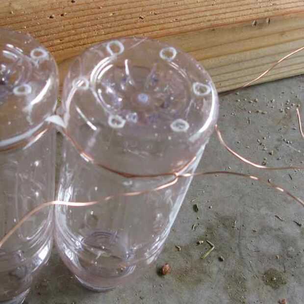 Doblar los extremos del alambre hacia la boca de la botella para mantenerlos fuera de su camino.
