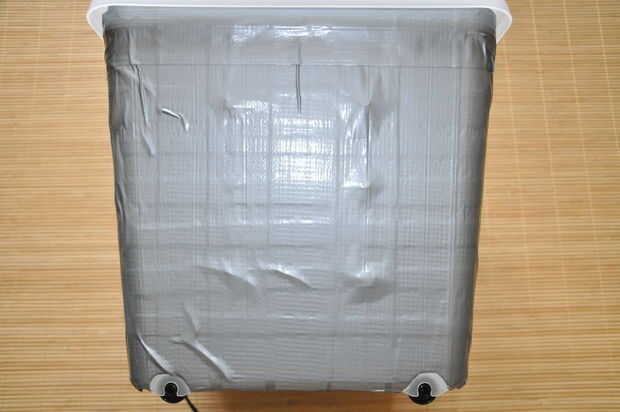 la cinta de conducto hacer las cosas un poco "rápida y sucia, pero tuve que hacerlo más sólido debido a las grietas que hice durante la perforación.