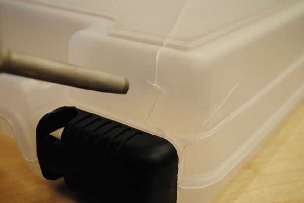 El primer paso en la soldadura algo juntos no incluya material de relleno. Esencialmente es amurado a la caja en varios lugares para celebrar juntos mientras el resto del trabajo se realiza la soldadura. Simplemente es mantener unida la caja y colocar el chorro de aire sobre la costura justo el tiempo suficiente para derretir parcialmente cada lado. Desea que el plástico se empiezan hacer transparente pero no empiezan a deformarse. (Esto es importante ver cómo si tuerce el cuadro, puede reducir aún más la calidad. Esto también es cierto tal vez más importante mientras que la soldadura con material de relleno.)