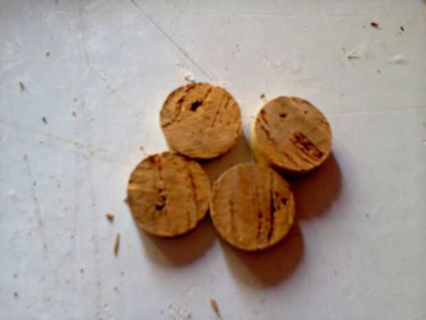 Tomar la herramienta de corte y cortar 4 piezas redondas de corchos y repetir el mismo proceso que el paso anterior.