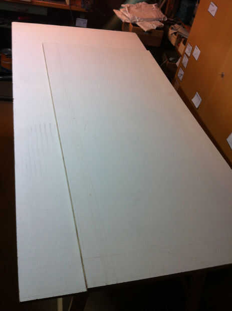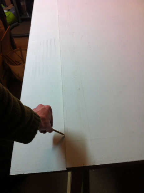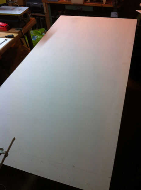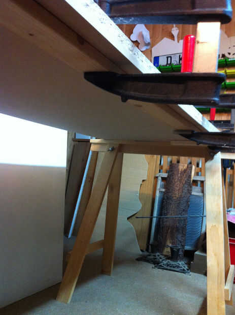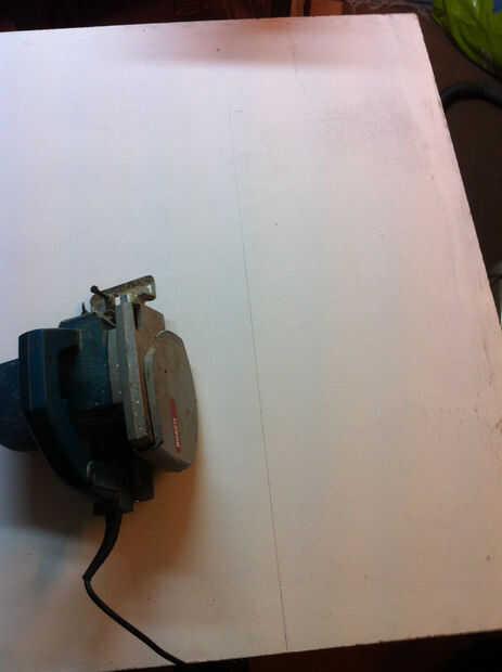 He apoyado la woodplate (de frente) sobre los soportes de caballete, medido, trazar las líneas y cortar con la sierra circular.