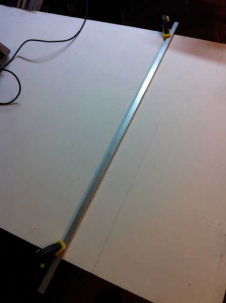 Usé una paz de metal, cual afianzado con abrazadera en la madera como guía, para obtener cortes rectos.