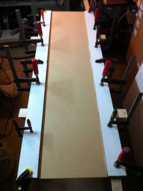 Las paces de madera fueron un par de milímetros más pequeño que el panel de la izquierda para que la parte superior puede descansar en él.
