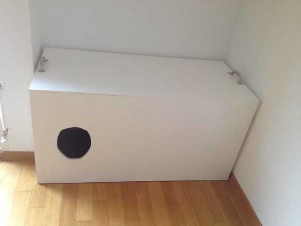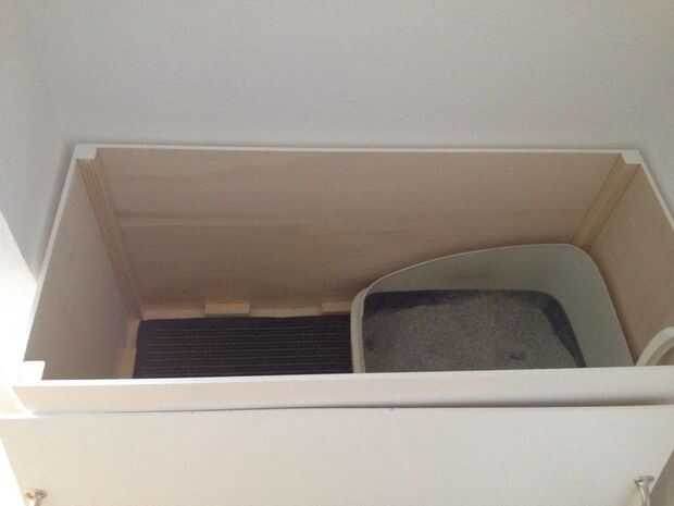 Poner la caja de arena dentro de su caja y cerrarla. Ahora los gatos irá dentro de la caja con la caja de arena. Los pequeños se quedan :-)