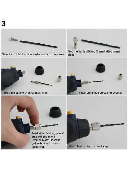 Siga las instrucciones en las imágenes de arriba. Una vez completado, fije el pedacito de taladro con una llave pequeña.