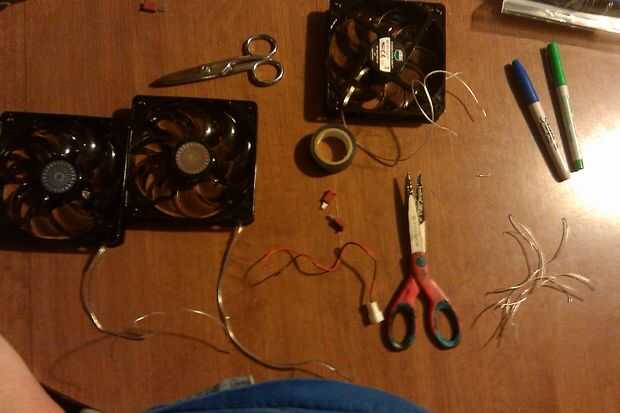 Si tus ventiladores no están codificadas por colores, llevar un adaptador de 4 pines y uno de lo pin de fans 3 enchufe. Esto le mostrará que es negative(black) y cual es el positivo (rojo o amarillo) Nota: usted puede cortar 4 pines adaptador para probar tus fans, con el adaptador de 12v DC, antes de cortar sus cables.
