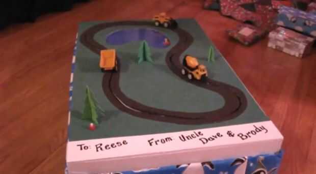 cada año mi familia tiene un concurso para ver quién puede hacer el mejor trabajo del embalaje de regalo. Mi pequeño sobrino amores camiones y construcción de equipo. Así que pensé que haría algunos camiones recorrer en la tapa de una caja para él. Fui a través de algunas ideas y rebotó algunas ideas de mi amigo Ben. Surgió con la idea de arrastrar los carros alrededor con imanes. Ahora cualquiera puede hacer cosas entran en un círculo. Quería subir la apuesta un poco y tener los carros conducir un camino serpenteante. Surgió la idea de usar cinta scotch como una cinta transportadora.