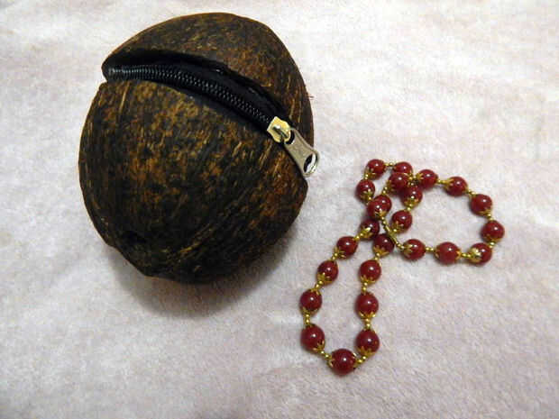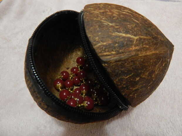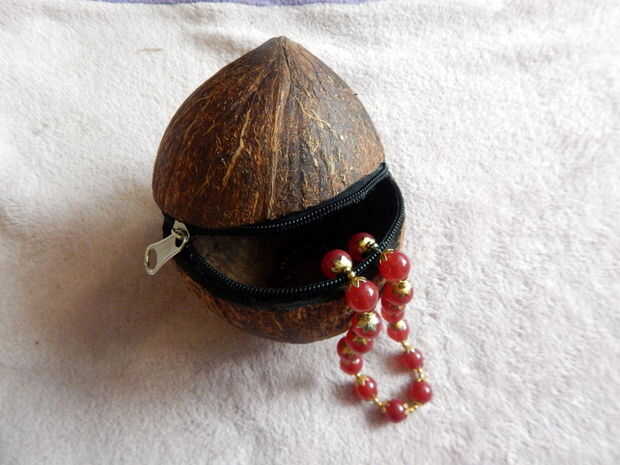 Cremallera de coco es hecha de coco real con cremallera. Sólo tienes que quitar el agua de coco y carne, cremallera de palillo en el centro de la cáscara del coco.