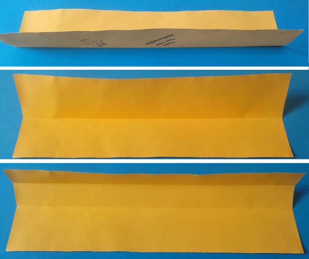 Tome la parte superior de la mitad (esto será la tapa) y doblar por la mitad (en blanco lado hacia arriba). Imágenes son en parte inferior