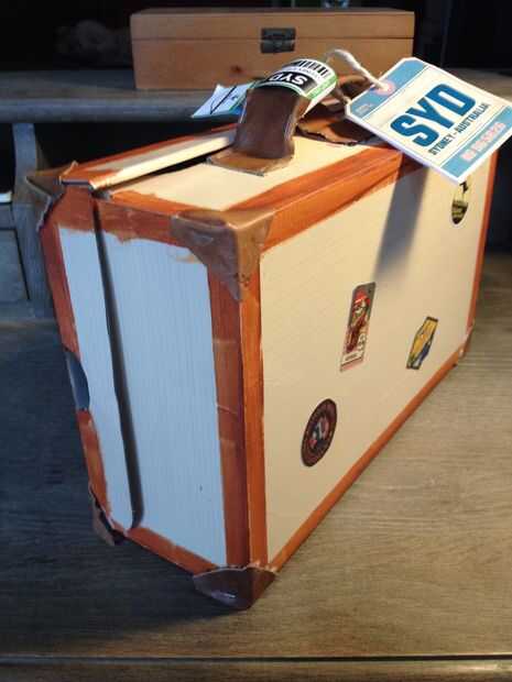 - Etiqueta de nombre de equipaje. Pegado a las piezas sobre cartulina. Atado con un trozo de cuerda.