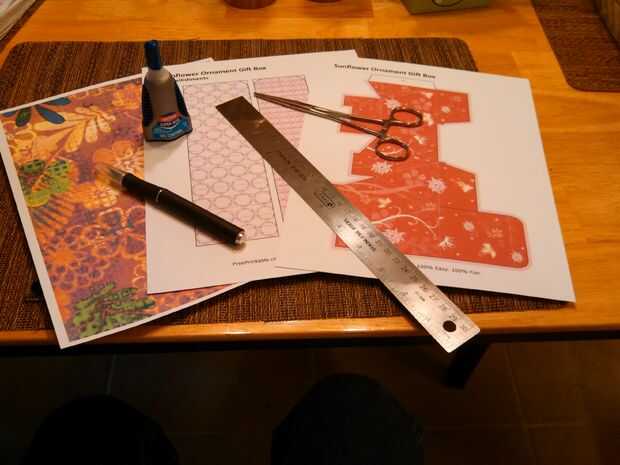 Necesitaba una placa de vidrio para el corte de una navaja pequeña (tijeras trabajar así), una regla de acero, un gran par de pinzas hemostáticas rectas (opcionales) y un tubo de pegamento. Desea utilizar cartulina pesada en comparación con el papel de la impresora regular.