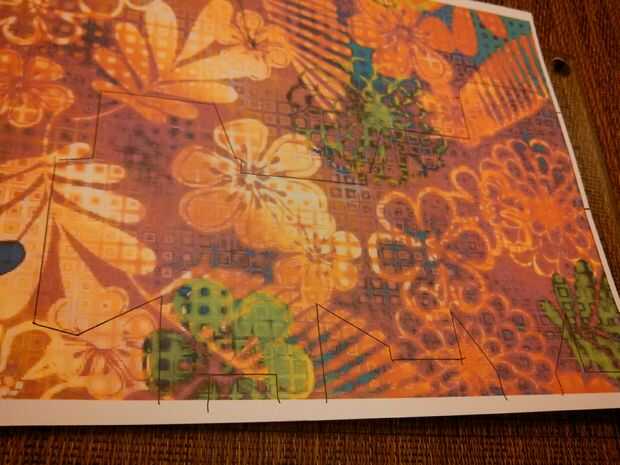 Coloque el patrón de recorte rojo sobre la hoja de diseño que usted escogió.