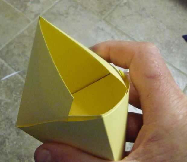 Doble hacia abajo la parte superior y colocar las fichas entre las capas de los lados correspondientes. Se realizan. Esta caja se puede abrir y cerrar varias veces. También puede ser desmontado para el almacenamiento y reutilización.