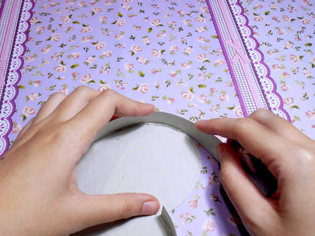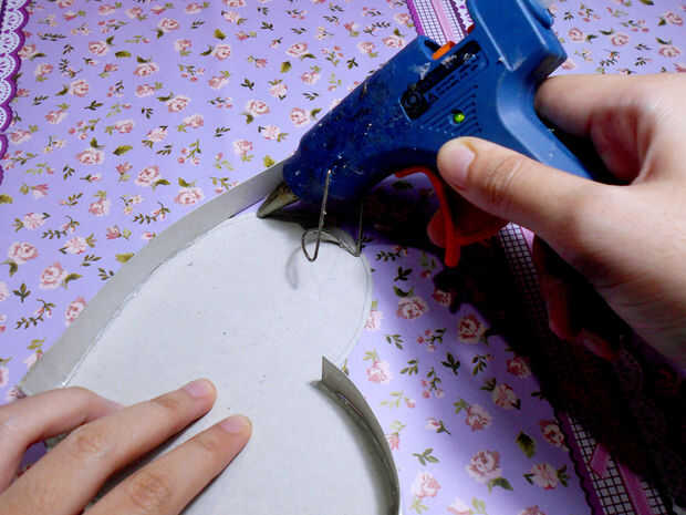 2. Hacer pegar la tira en pleno a lo largo de los bordes con pegamento caliente. Cubrir toda la línea del corazón con la tira.