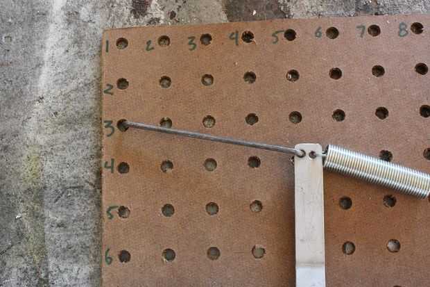Doble un ángulo de 90 grados en la varilla de 1/8 de pulgada. El mio es 1/4 de pulgada de longitud. Medida desde el interior de la curva para la longitud mide desde el agujero el gatillo 3 de agujero a agujero de montaje. Mina fue 4inches. Marcar y doblar otro 90 grados la misma dirección que la anterior. Corte el exceso de material. Se trata de cómo se puede montar el gatillo. Tire el resorte a la parte inferior derecha en un punto apretado pero fácil para tirar de a. Lugar una cerca por agujero y Ron el perno de 8-32 a través con una arandela a cada lado de la Junta y ejecutar la tuerca apretada. Este será el gancho de resorte. Usé el agujero 12-7.